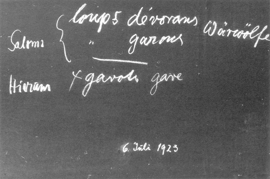 So there were in France around the time indicated essentially two such craft associations. One association was called “Loups Dévorants” or “Loups garous”. That was one. The other was called “Gavots”. And the two were constituted as I have described, and both had, in the times when they could devote themselves to such a matter, gatherings that took place in the same way in different cities. At these gatherings, there was, first of all, careful practice of the identifying signs; but then there were festivities during which people spoke in symbols and had decorated the festival hall with symbols. There were festivities during which legends were told that traced such associations far back in history. For example, the “Dévorants,” the “Loups garous” — if I wanted to use a German word, I would have to say “werewolves” — traced the entire history of this association back to King Solomon and told a legend that led back to King Solomon. In the case of the Gavots, the legend, which was told in many different ways, went back to the Phrygian master builder Hieram Abiff. These associations differed in many ways. And only by carefully examining the practices could one gradually arrive at the spiritual background of which the members were well aware.