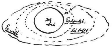 Object Subject / Weltschöpferischer Gedanke Gedanken Linie Fläche Gattung usw. / Astrallicht Weltschöpferisches Gefühl Aeonenlicht höherer Art Gefühl Lust Leid Sympathie Antipathie / Astrallicht Weltschöpferischer Wille Aeonenlicht niederer Art Empfindung Farbe Hell Dunkel /